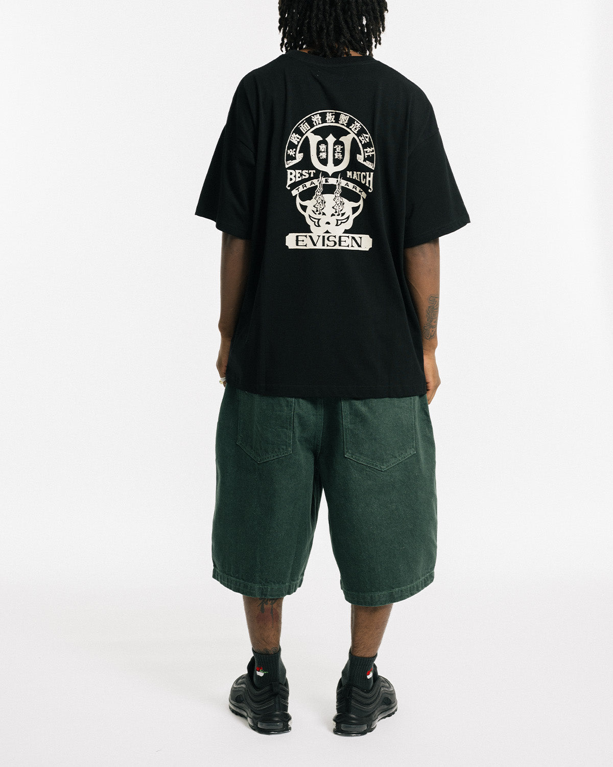 程よくワイドなシルエット。ソリッドカラーのほか、EVISENの文字が隠れたオリジナルのカモフラージュ柄ボディも展開。