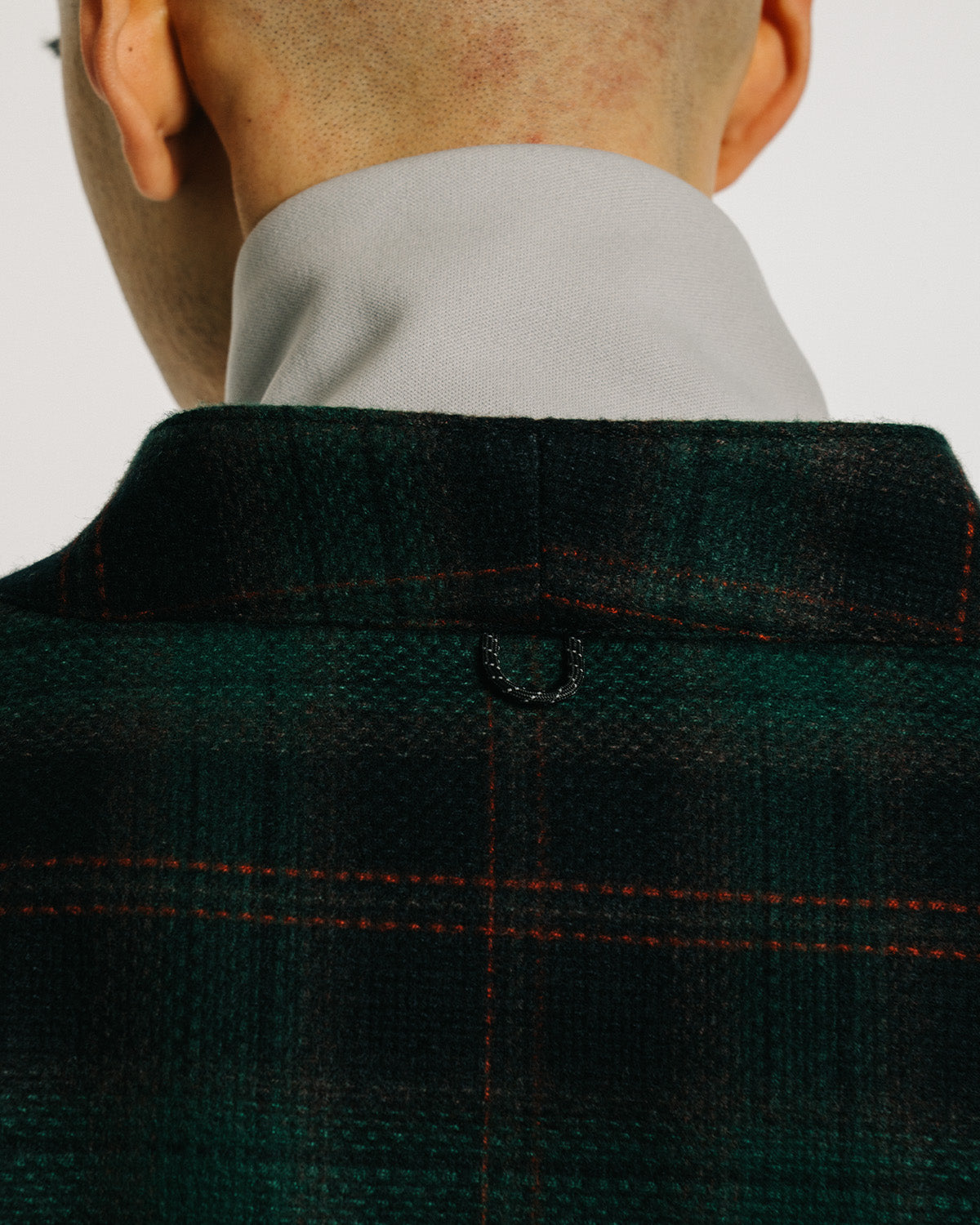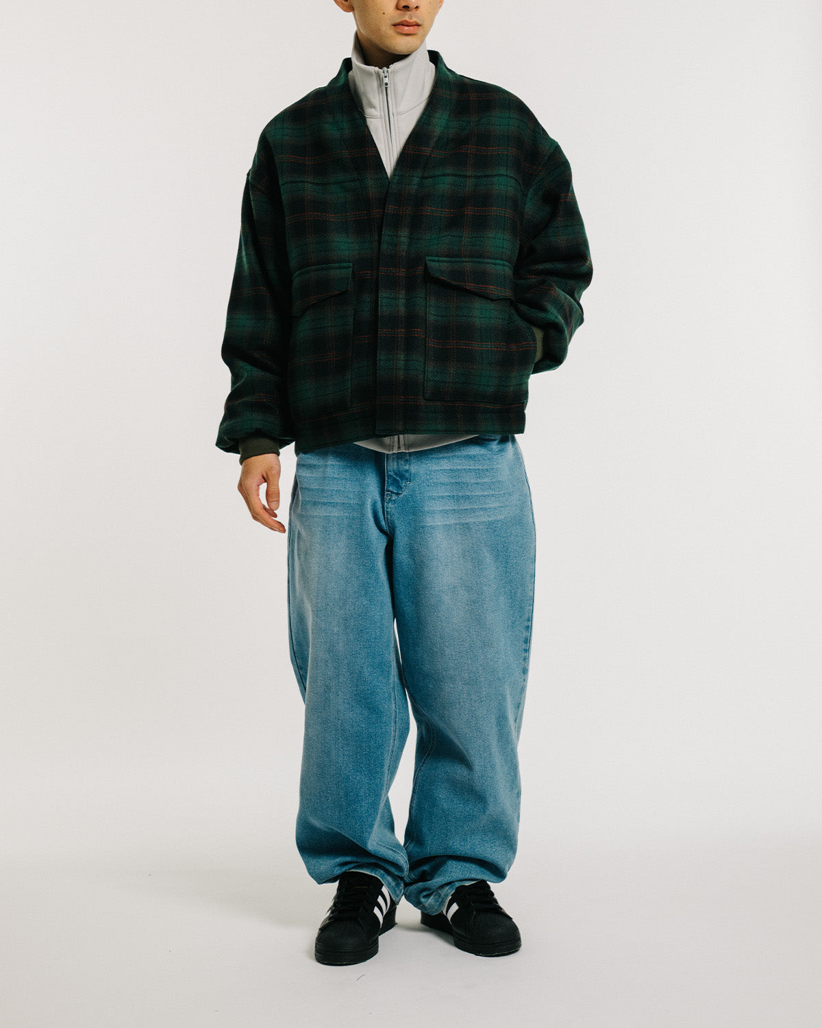 身頃内側には左右にインナーポケット、左胸に貴重品などの収納に便利なファスナーポケットを搭載。同じフランネル素材のパンツと合わせたセットアップコーディネートもできます。