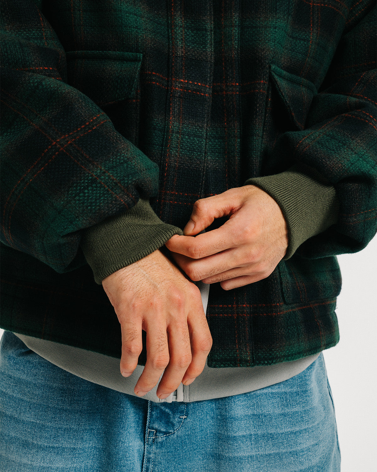 江戸時代のバスローブ的防寒着、どてらに思いを馳せて作ったジャケット。やや厚手で温かみのあるフランネルチェック柄生地の中綿には、軽さと暖かさを両立させた機能素材シンサレート™を採用。