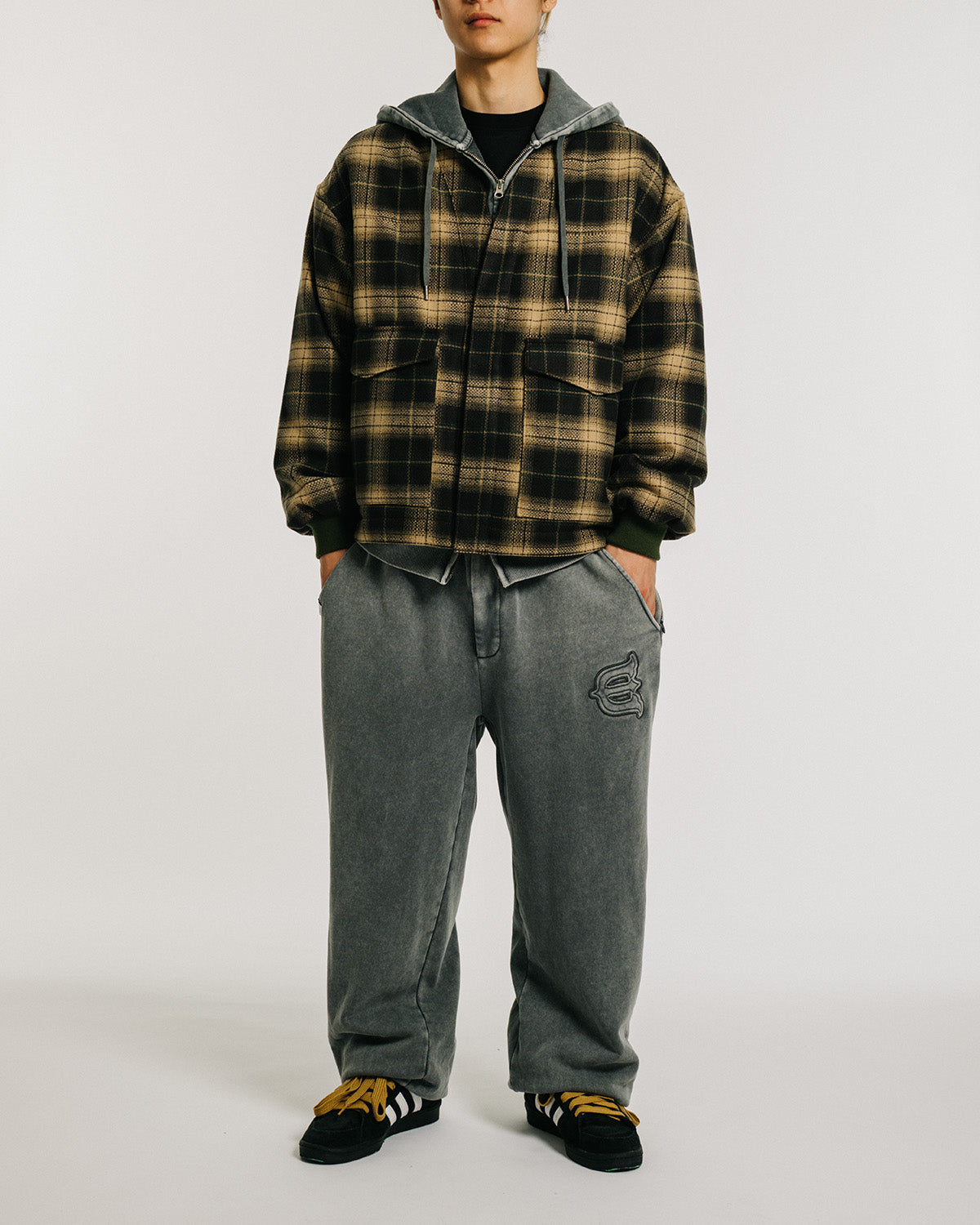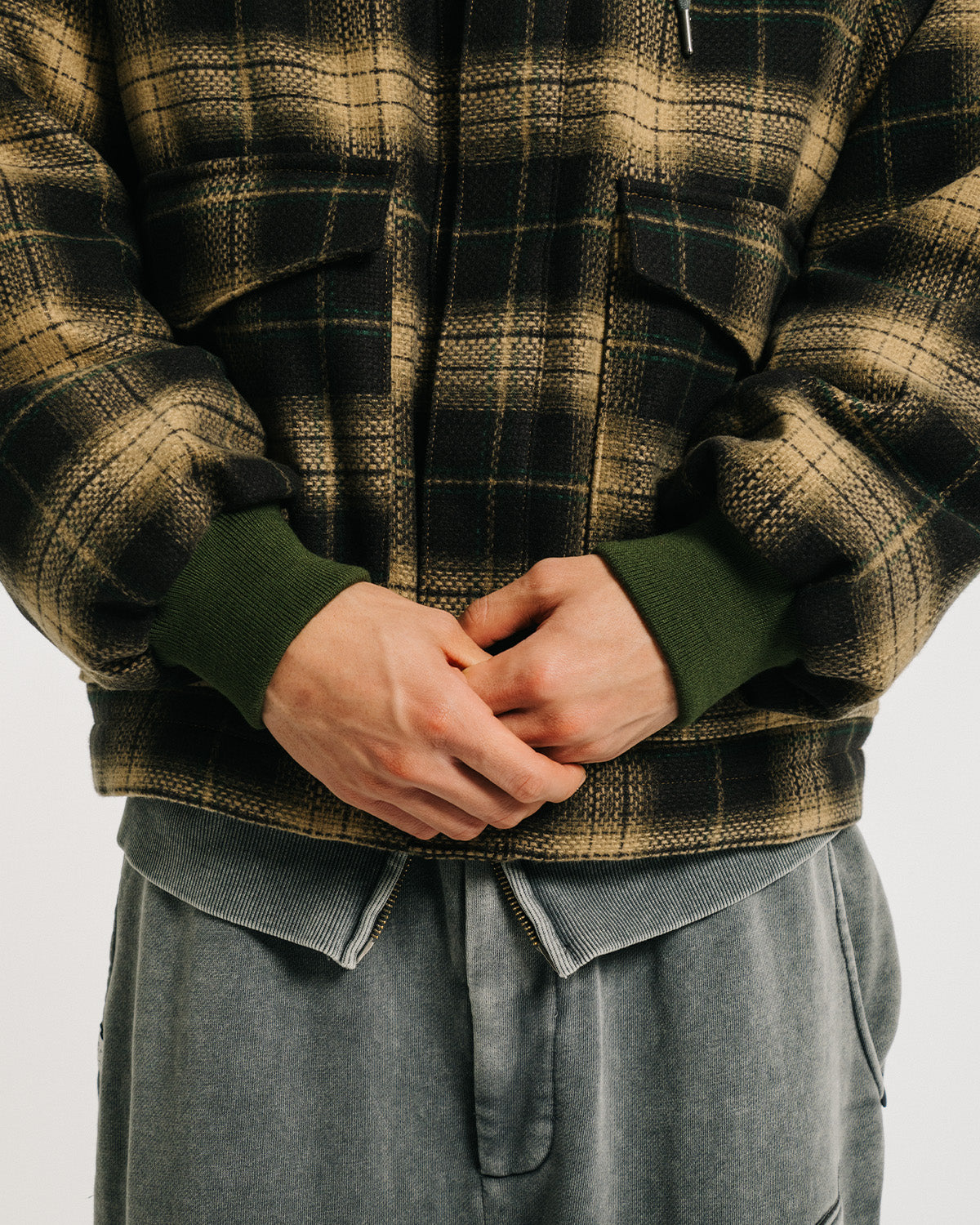 身頃内側には左右にインナーポケット、左胸に貴重品などの収納に便利なファスナーポケットを搭載。同じフランネル素材のパンツと合わせたセットアップコーディネートもできます。