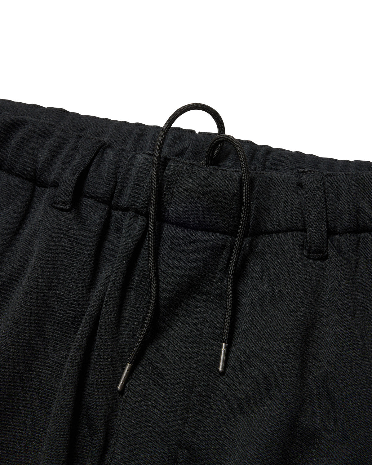 程よい厚みと弾力、ストレッチ性のある滑らかな質感の3段スムースジャージ素材を使用。ウエストにはベルトループと内出しの腰紐付き。フロントはフライファスナー仕様。