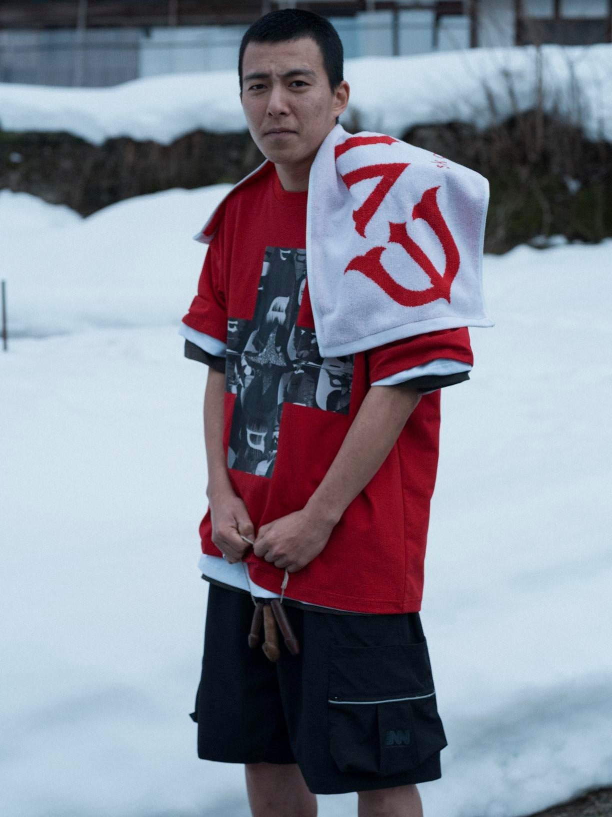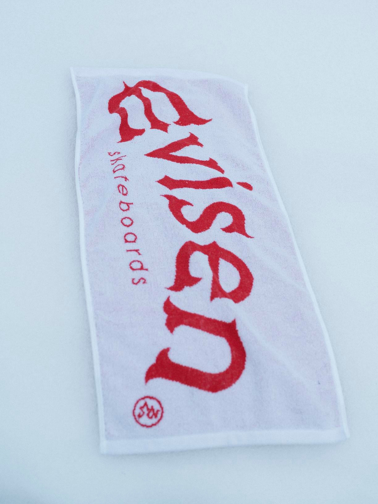 アーチ型に配したEvisenの定番ロゴをプリントしたフェイスタオル。