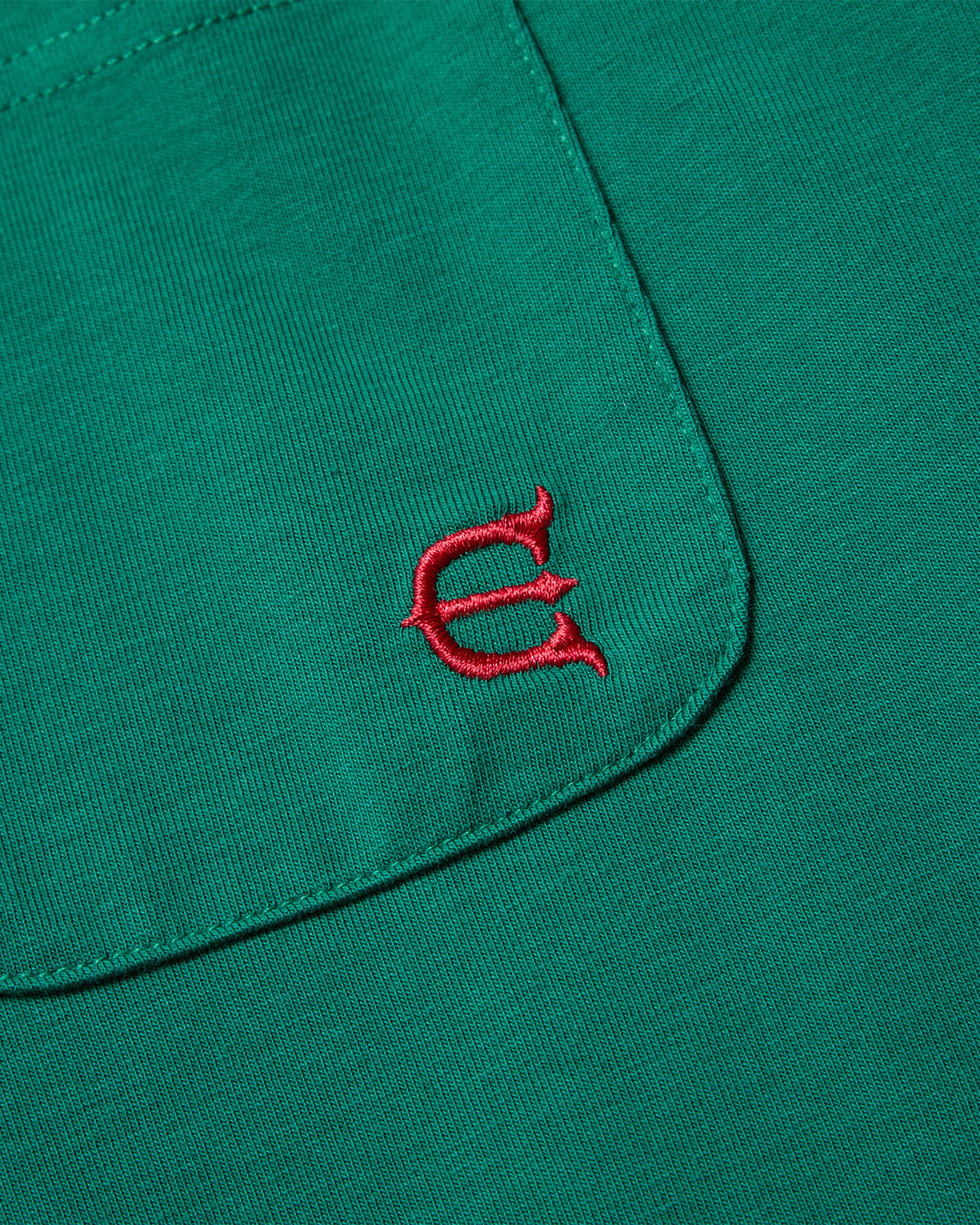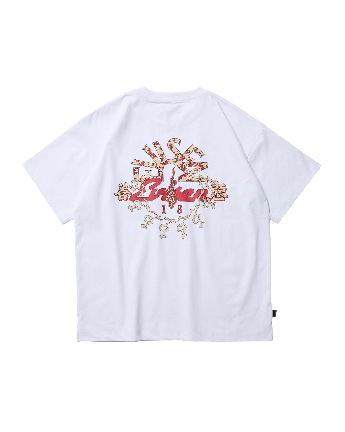左胸のEロゴ刺繍入りポケットの下にはEYEファイヤーグラフィックをプリント。