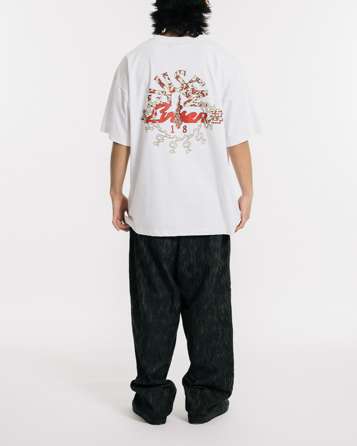 背中にもロゴグラフィックをプリントしています。