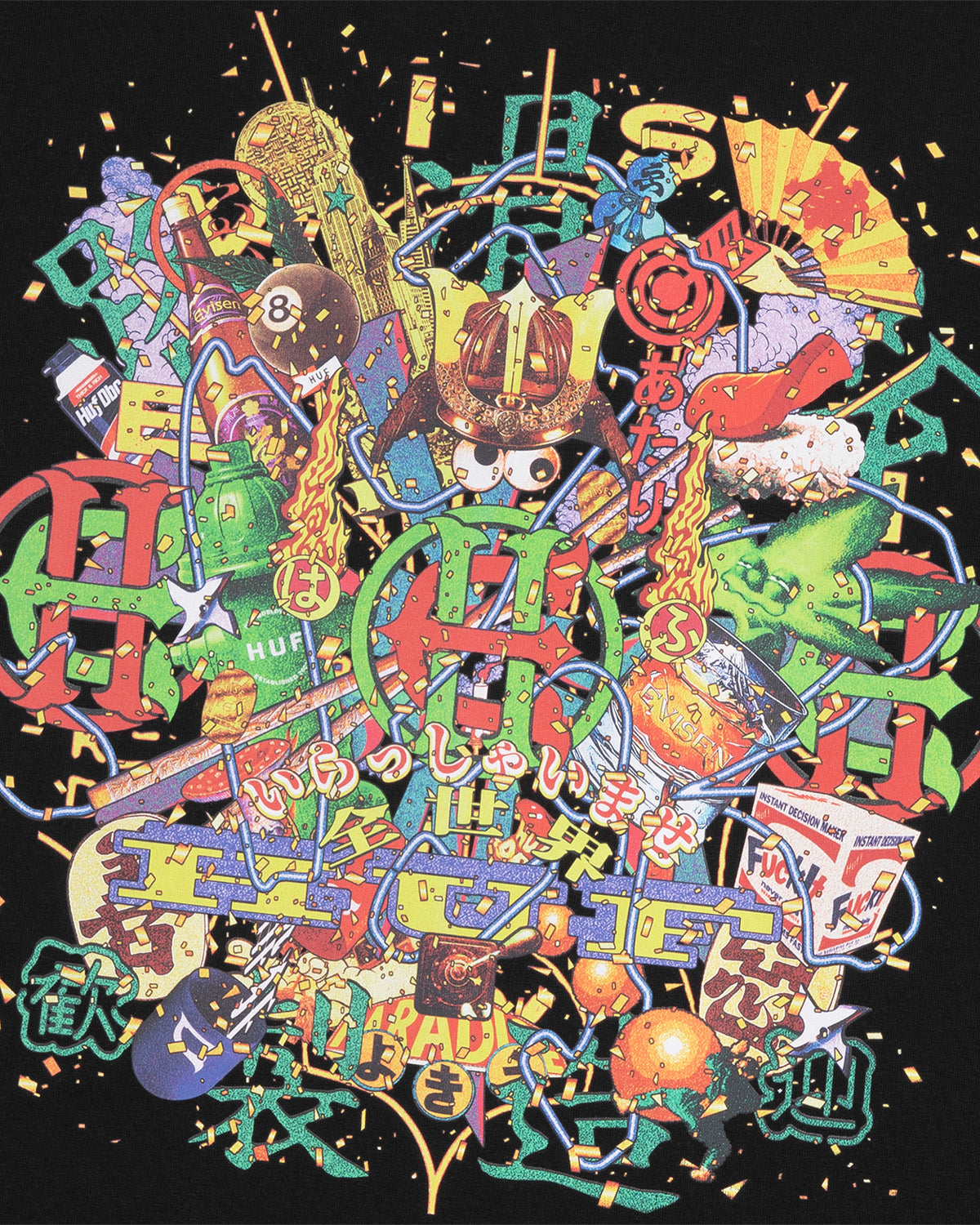 背面にはそれぞれのグラフィックが合わさった、多彩でインパクトのあるアートワークプリント。