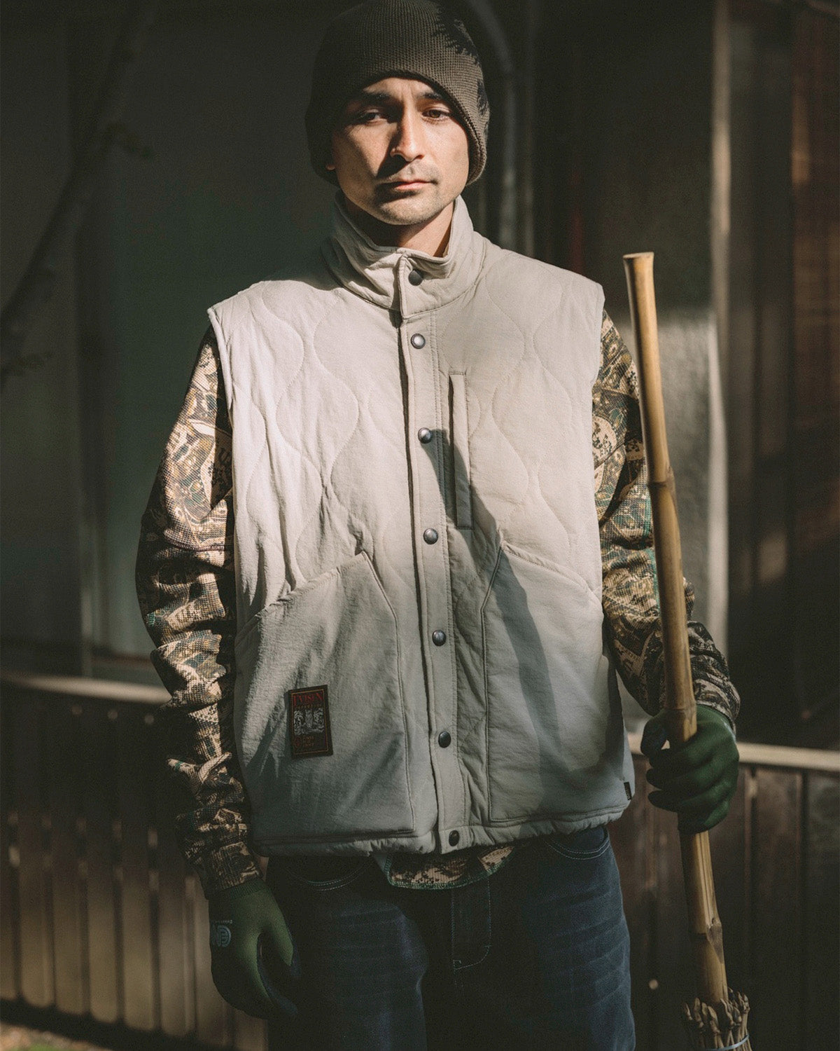 Evisen 名作ベストのリバイバル!ひょうたん柄のキルトステッチが入った、中綿入りのスタン ドカラーベストです。