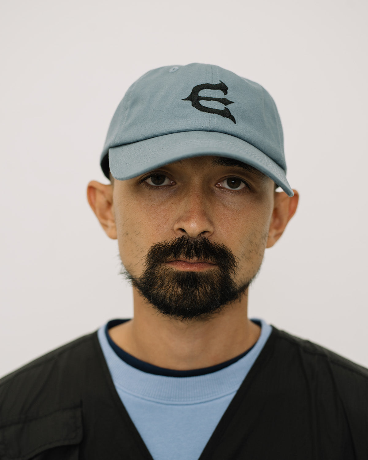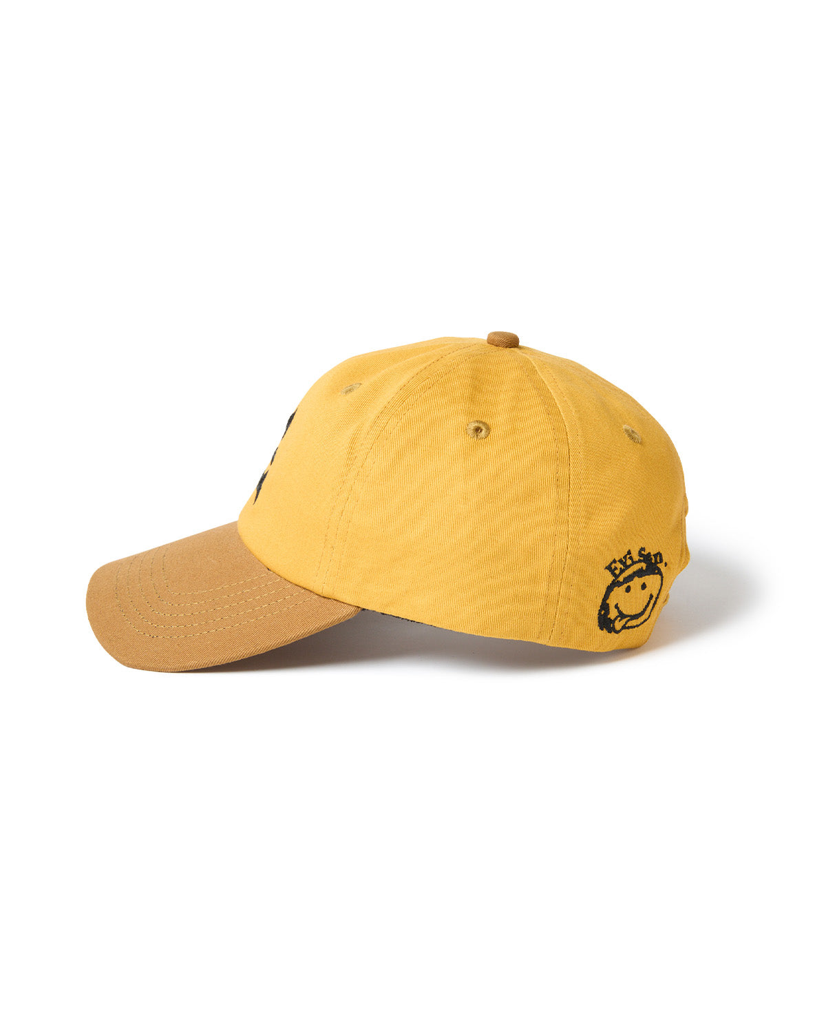 フロントの歪んだEロゴとバックパネルの酔っ払ったニコちゃん刺繍がポイントです。クラウン全てにアイレット入り。