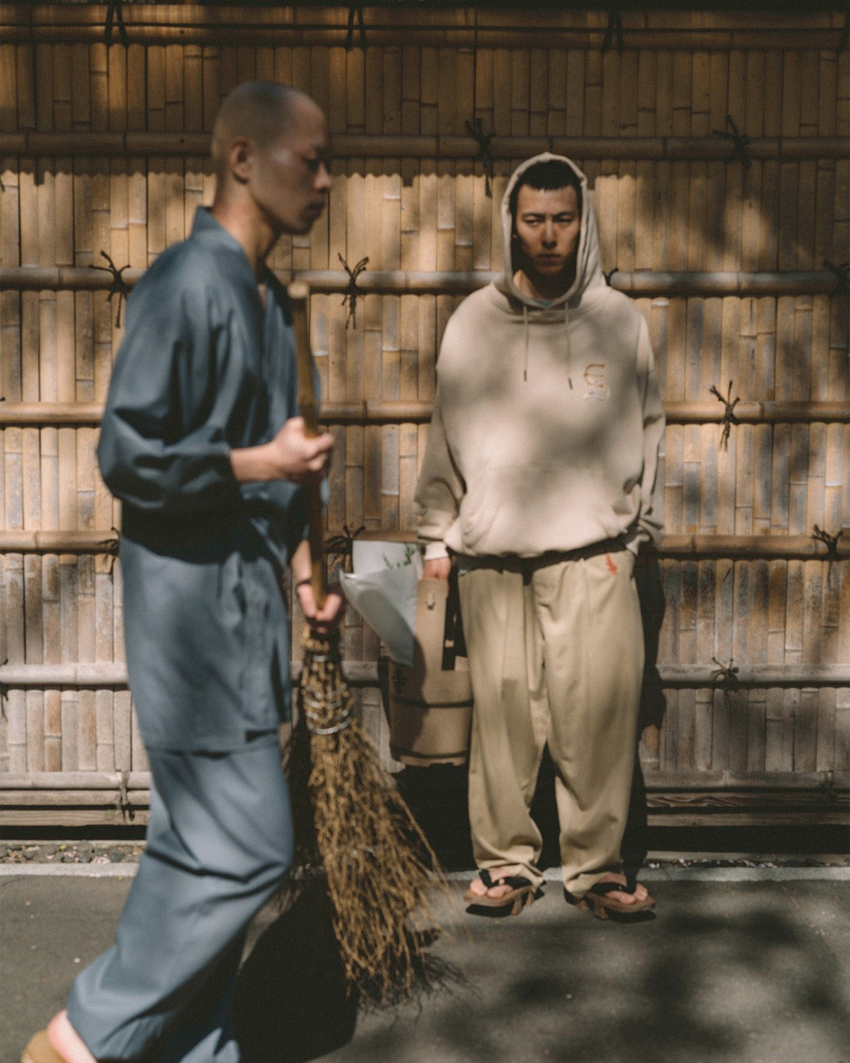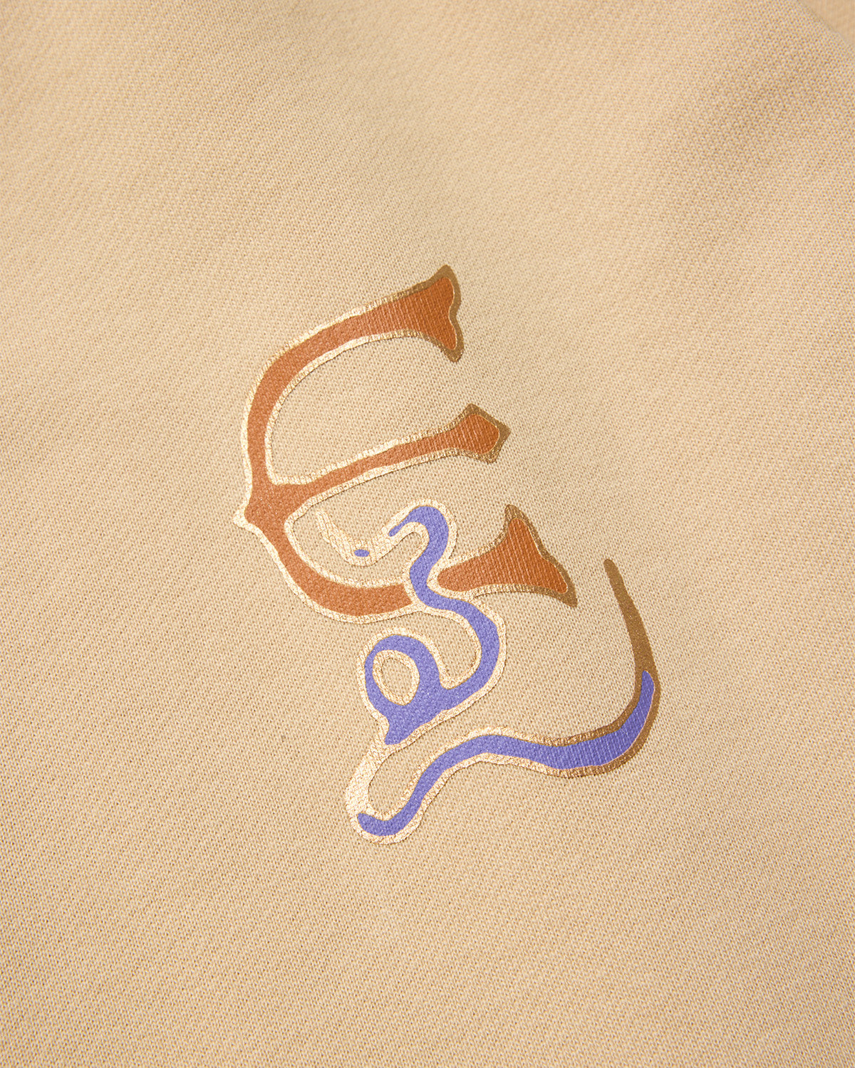 フロント左胸にワンポイントグラフィックとバックに多色使いのOver Landグラフィックをプリント。フロントにカンガルーポケット付き。