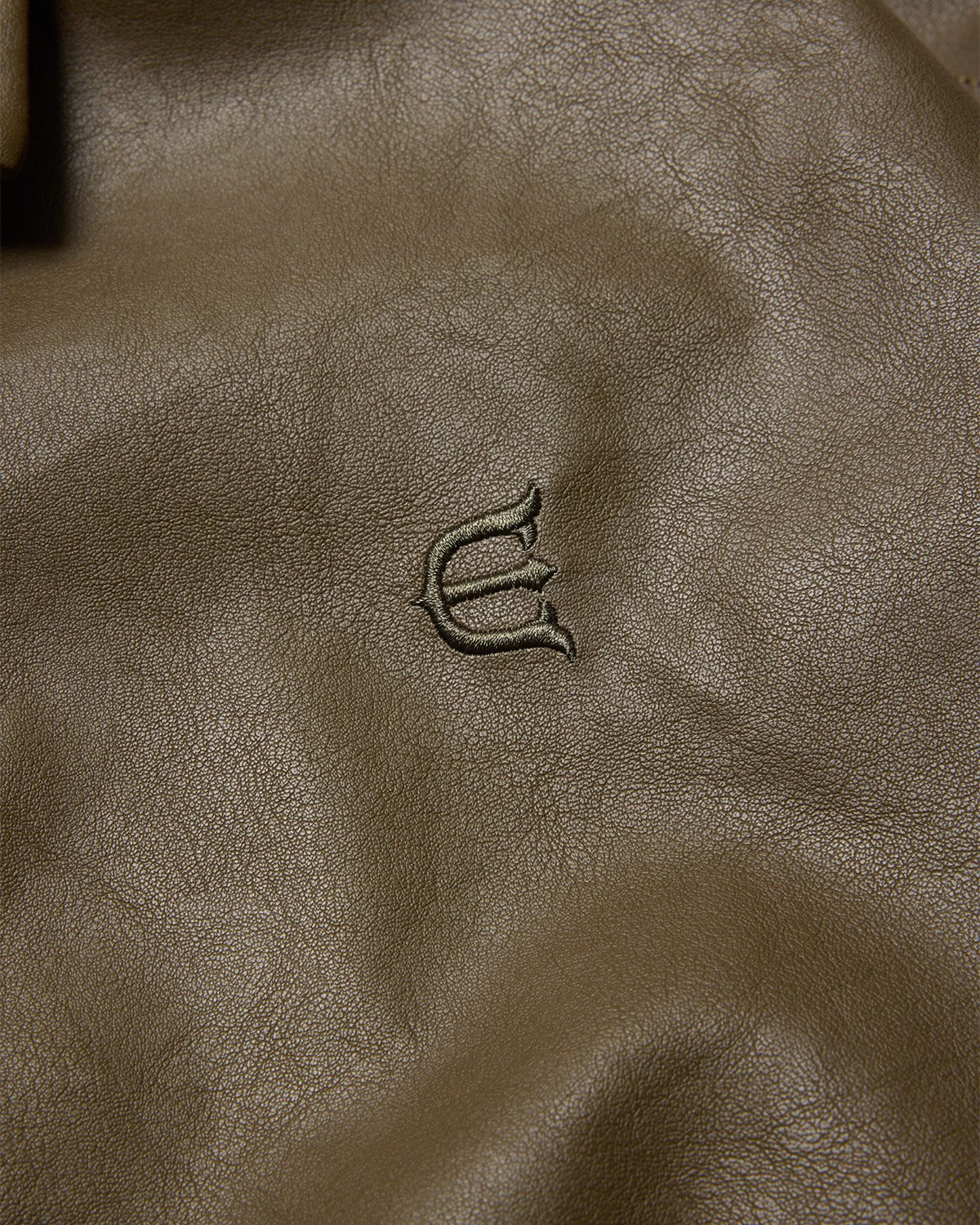 シボ加工が落ち着いた印象の扱いやすい合成皮革を使用したブルゾン。