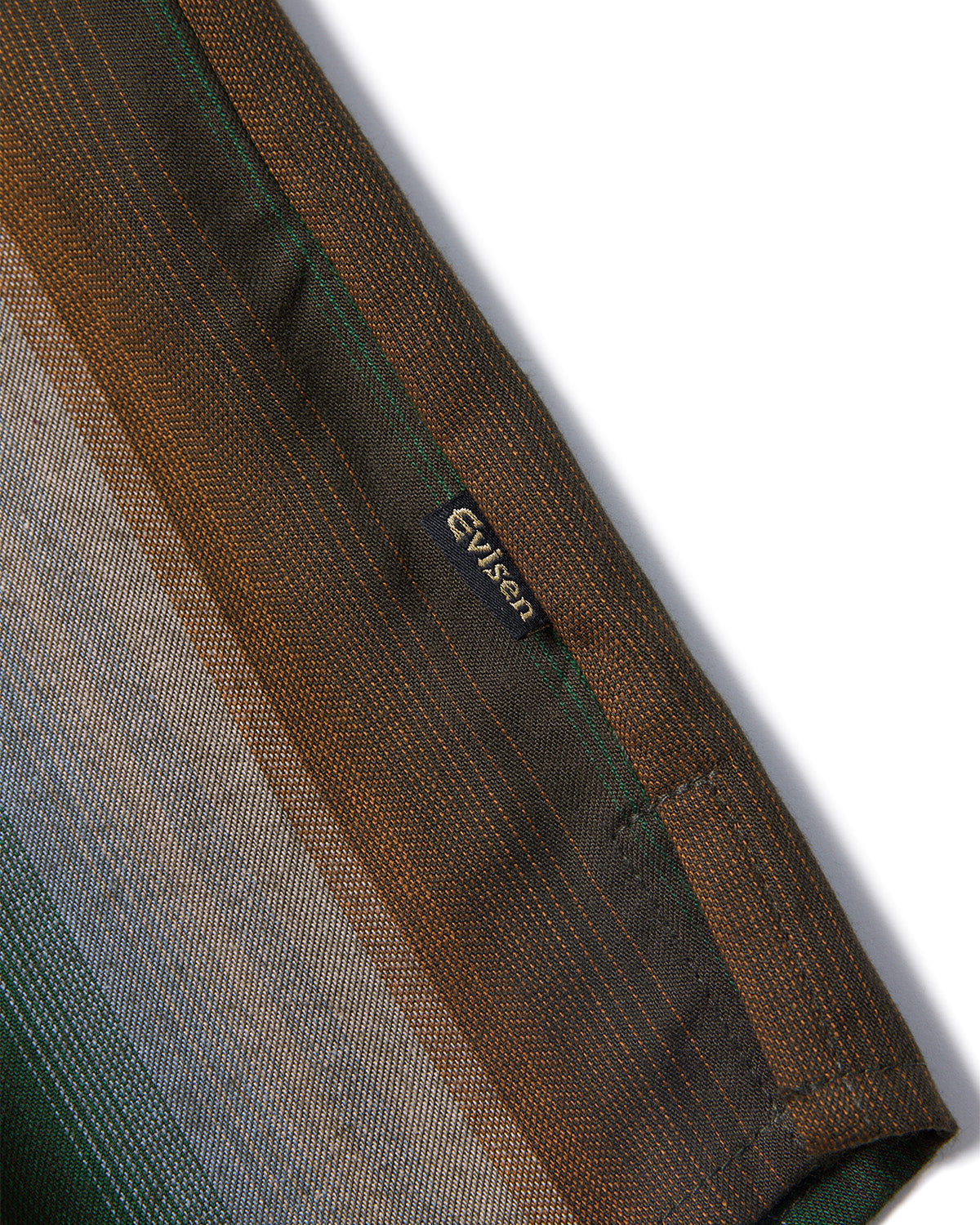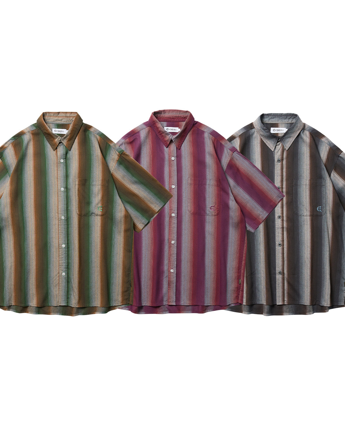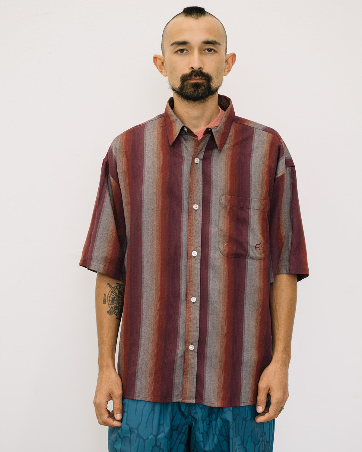 グラデーションのようなストライプ柄がハイセンスな印象の半袖ボタンアップシャツ。